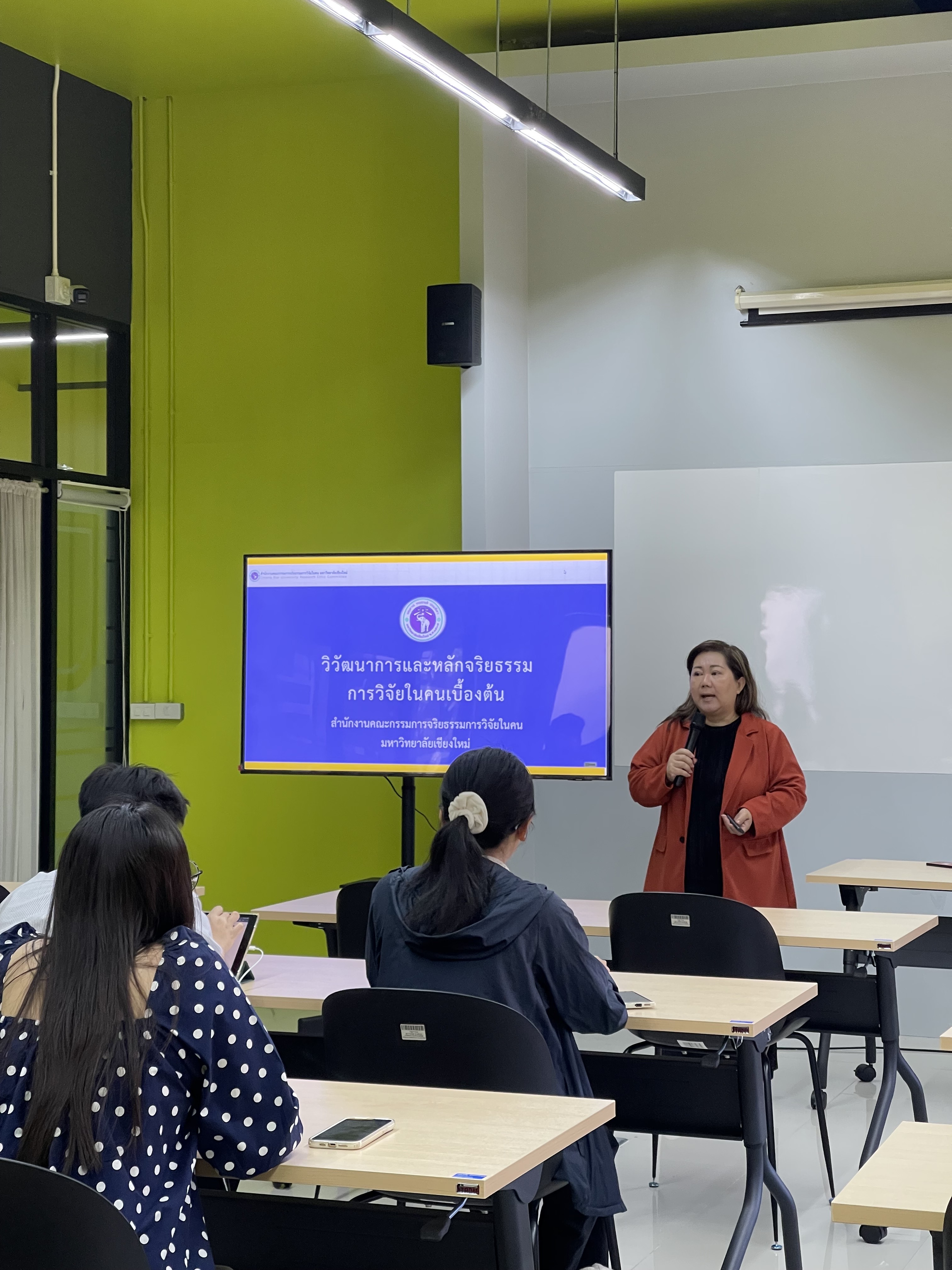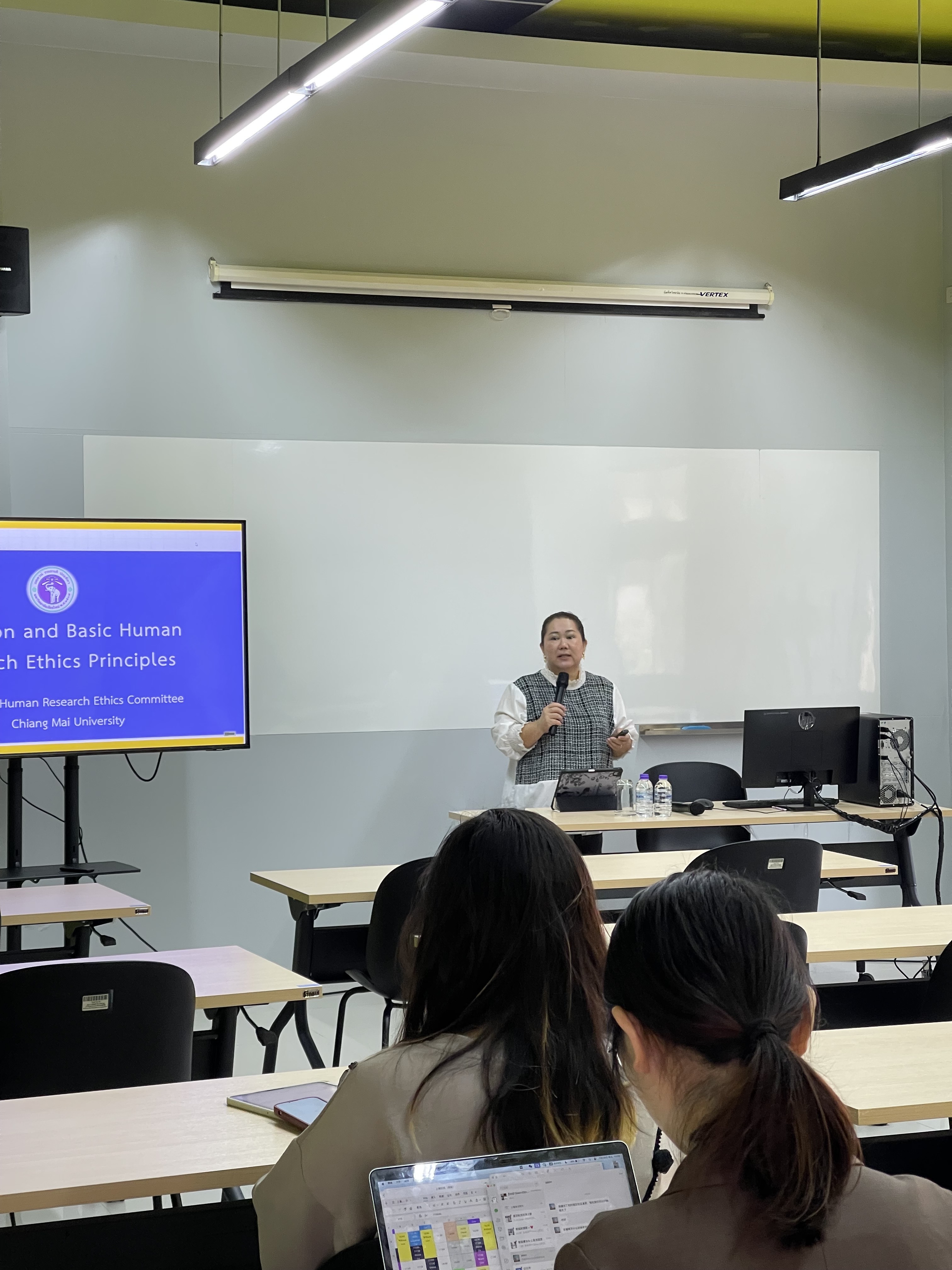 เมื่อวันที่ 27 – 28 กุมภาพันธ์ 2568 สำนักงานคณะกรรมการจริยธรรมการวิจัยในคน มหาวิทยาลัยเชียงใหม่ ได้รับเชิญเป็นวิทยากรบรรยายใน “โครงการอบรมจริยธรรมการวิจัยในคน” ซึ่งจัดโดยวิทยาลัยพหุวิทยาการและสหวิทยาการ มหาวิทยาลัยเชียงใหม่ ณ ห้องเรียน 3-208 ชั้น 2 อาคาร 3